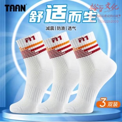 TAAN泰昂 男款加厚毛巾底中筒羽毛球袜子 T513白红色3双装码 (SKU:yzwhyp938438
