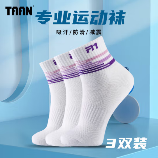 TAAN泰昂 羽毛球袜加厚毛巾底吸汗透气运动袜中筒女袜T178 白紫色3双装 (SKU:yzwhyp938453