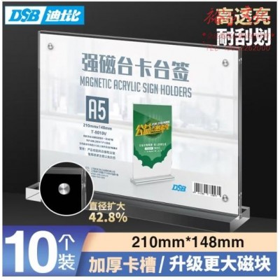 DSB(迪士比)桌牌席卡亚克力T型强磁台卡台签 210mm*148mm 横款高清桌签广告会议展示酒水牌 10个装 T-8010V (SKU:yzwhyp939587
