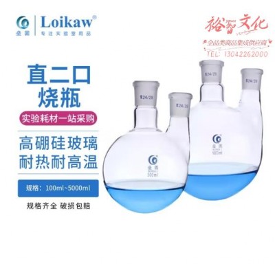 垒固 直二口烧瓶 圆底两口烧瓶 高硼硅耐高温圆底烧瓶反应瓶 直二口500ml/24/24 (SKU:yzwhyp940312