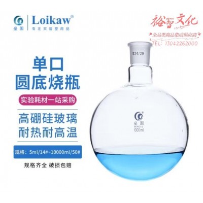 首页 > 建筑建材 > 手动工具 > 垒固 玻璃单口圆底烧瓶标准磨砂口耐高温球形实验室耗材蒸馏瓶 2000mL40/38 (SKU:yzwhyp940776