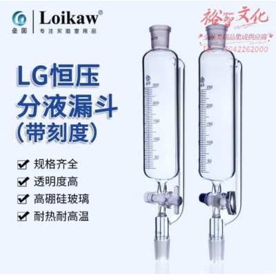 垒固 玻璃四氟F4活塞恒压分液漏斗高硼硅玻璃滴液漏斗标准口 250ml 四氟活塞(带刻度) (SKU:yzwhyp940858