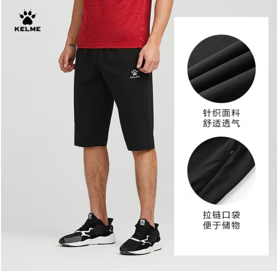 KELME /卡尔美夏季新款男士针织七分裤薄款运动休闲中裤松紧腰口袋拉链 黑色 XL/180 (SKU:yzwhyp941352