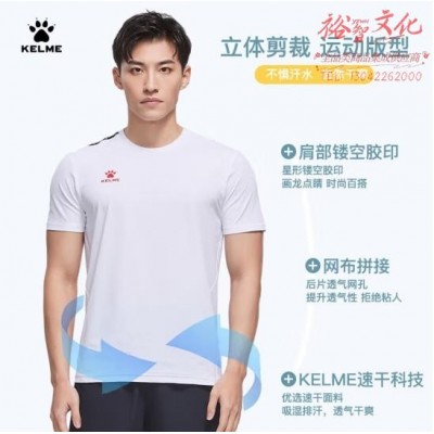 KELME/卡尔美 短袖T恤男女夏季运动训练服后背网布拼接透气干爽健身上衣 8251TX1007 白色-男款 3XL (SKU:yzwhyp941396
