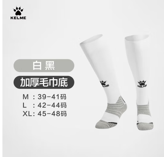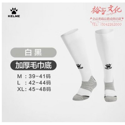 KELME/卡尔美高筒足球袜男职业透气防滑毛巾底加厚长筒袜比赛袜子女 白色 L(42-44) (SKU:yzwhyp941510