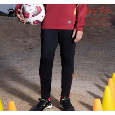 卡尔美(KELME)足球运动裤儿童 亚洲杯出征系列弹力跑步训练裤青训收腿长裤 黑红 130 (SKU:yzwhyp941552