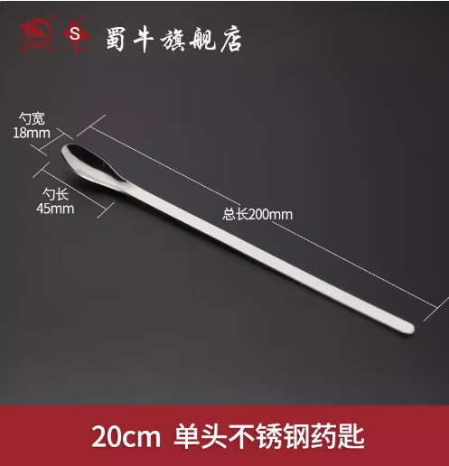 首页 > 仪器仪表 > 样品前处理及制备仪器 > 蜀牛 不锈钢药勺药刮单双头药匙微量药勺不锈钢药刮 20cm/单头 不锈钢药匙(5个起订) (SKU:yzwhyp941985