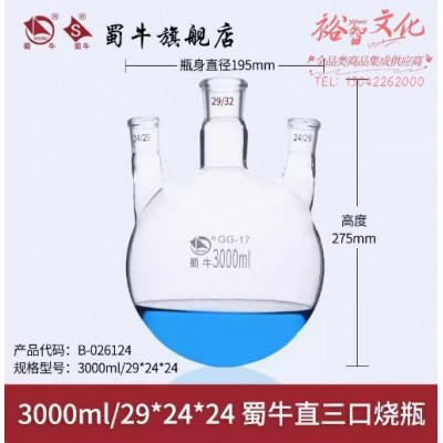 蜀牛 直三口烧瓶三口圆底烧瓶反应瓶 3000ml/29*24*24 直三口烧瓶 (SKU:yzwhyp942155