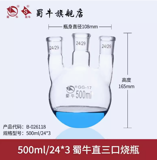 蜀牛 直三口烧瓶三口圆底烧瓶反应瓶 500ml/24*3 直三口烧瓶 (SKU:yzwhyp942161