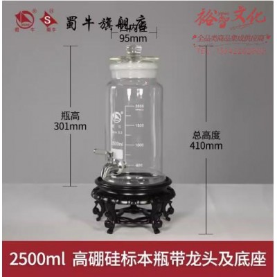 蜀牛 高硼硅玻璃标本瓶实验室样瓶磨砂广口储存瓶 2500ml(带龙头及底座) 高硼硅标本瓶 (SKU:yzwhyp942208