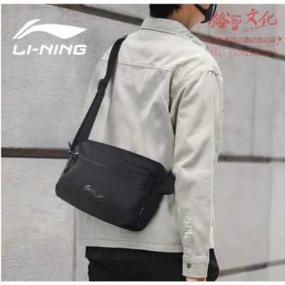 李宁斜跨包男单肩包女运动休闲包情侣同款户外骑行包小包旅行包标准黑 (SKU:yzwhyp942423