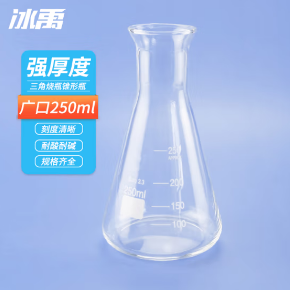 冰禹 BYS-218 三角烧瓶平底锥形瓶 加厚高硼硅玻璃耐高温带刻度 广口250ml(2个起订) (SKU:yzwhyp942633