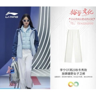 李宁放肆趣野丨加绒保暖卫裤女子新款直筒运动长裤子AKLTB00 【加绒】乳白色-3 M (SKU:yzwhyp943114