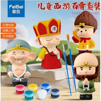菲贝儿童国潮西游记彩绘石膏娃娃涂色白坯上色儿童创意绘画男孩女孩3-6岁孩子 (SKU:yzwhyp943533
