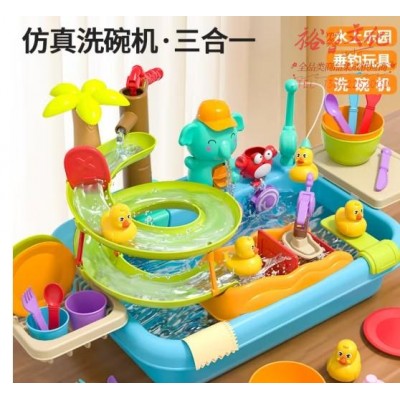 赟娅儿童洗碗机钓鱼玩具电动循环出水上乐园洗菜池过家家厨房儿童礼物 洗碗机蓝色 滑道 钓竿 戏水配件 (SKU:yzwhyp943638