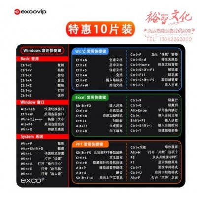 宜适酷(EXCO)10片装常用Office办公快捷键鼠标垫子小号大全 excel黑色PPT笔记本便携0275 (SKU:yzwhyp943978