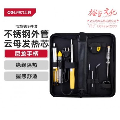 得力(deli)40W电烙铁9件套布包套装锡焊焊接工具双层云母发热芯 (SKU:yzwhyp944462
