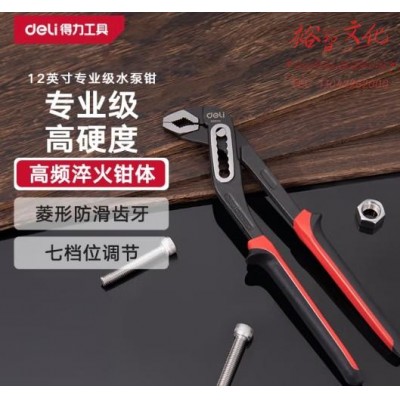 得力(deli)专业级高硬度水管钳多功能水泵钳7档调节大开口活动扳手 12英寸 (SKU:yzwhyp944569