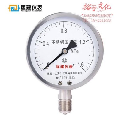 首页 > 建筑建材 > 五金附件 > 匡建仪表(CONJANT)Y-100BF 304不锈钢压力表 防腐耐高温抗酸碱 0-1.6mpa (SKU:yzwhyp945655