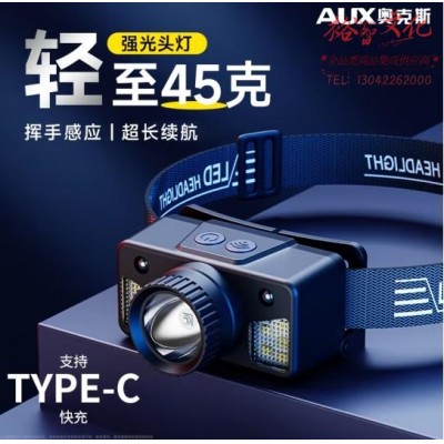 奥克斯头灯强光充电可变焦超亮感应夜钓钓鱼专用超长续航头戴式照明手电 (SKU:yzwhyp947610