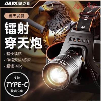 奥克斯头灯强光超亮变焦感应充电夜钓灯超长续航户外矿灯钓鱼灯头戴式 (SKU:yzwhyp947614