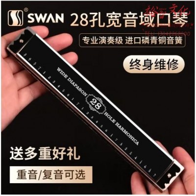 天鹅SWAN口琴 28孔复音高级定制成人专业演奏口琴C调(黑色) (SKU:yzwhyp948058