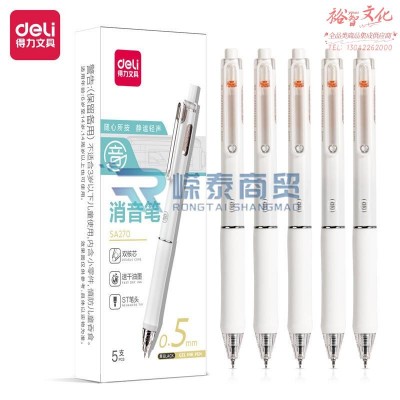 得力SA270按动中性笔 低分贝中性笔 0.5mm双球珠ST头(黑色)(5支/盒)SKU:yzwhyp949149