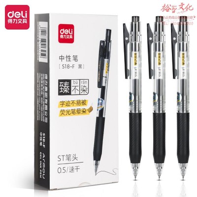得力S18-F抗晕染学生按动中性笔0.5mmST头(黑)(支)SKU:yzwhyp949150
