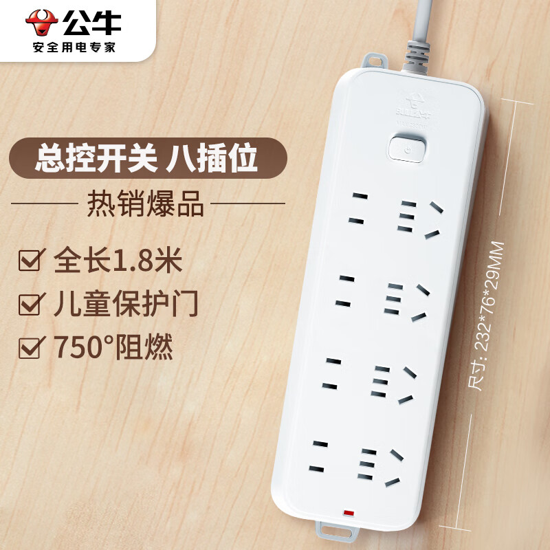 公牛(BULL)插座/插线板 8位总控全长1.8米 GN-B3440 SKU:bangke2002390SKU:yzwhyp949475