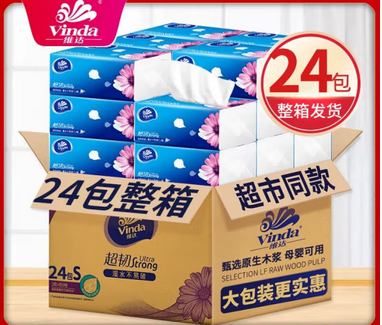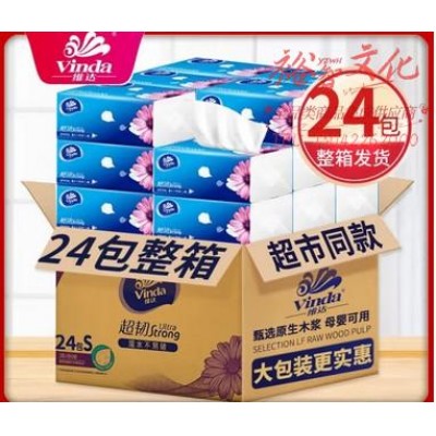 维达(Vinda)抽纸巾24包整箱批发实惠家庭装餐巾纸 卫生纸 维达抽纸24包(箱装)SKU:yzwhyp949567