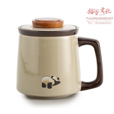 梅岭先生国潮可爱熊猫高颜值陶瓷马克杯家用办公杯盖过滤杯子水杯SKU:yzwhyp951173