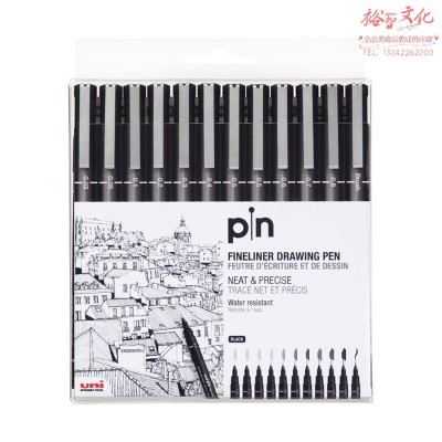 三菱(uni)水性绘图针管笔 PIN-200美术漫画设计描边描线笔勾线笔 黑色 12支套装SKU:yzwhyp951865