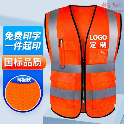 反光背心高亮多口袋施工工程反光衣环卫马甲安全交通警示服-网格款橙色SKU:yzwhyp954770