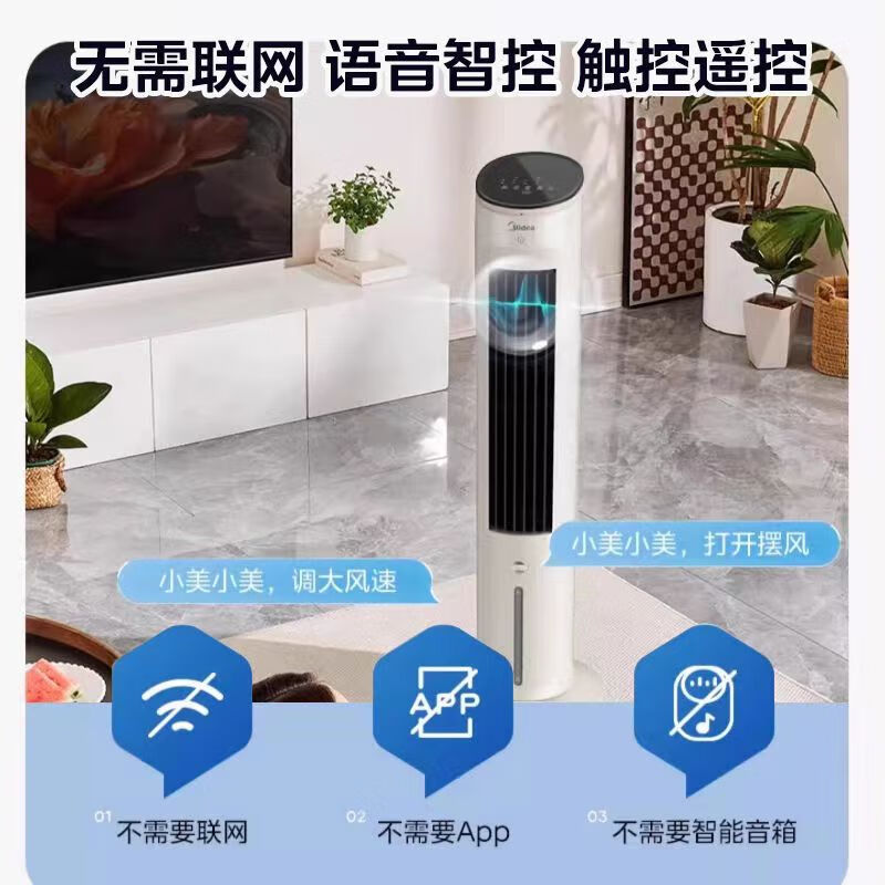 美的冷风扇空调扇家用水冷塔扇制冷风机冷气机节能小空调冷风机负离子净化风扇 整屋极致制冷-负离子净化-语音遥控SKU:yzwhyp958805