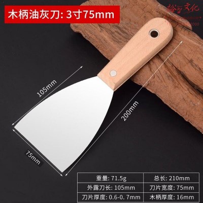 加厚不锈钢油灰刀填缝小铲刀清洁刮刀抹刀腻子灰刀油漆批刀抹泥刀 木柄油灰刀3寸(口宽75mm)SKU:yzwhyp959141