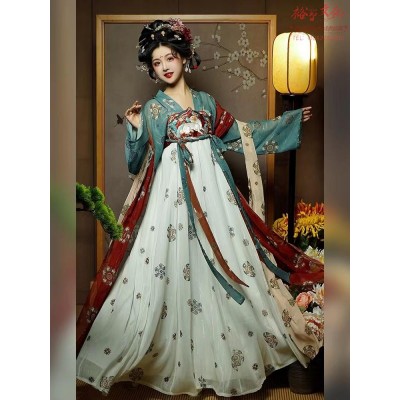 汉服民族服装教学用品 汉服女春夏唐制齐胸襦裙国风春夏薄款 绿色上衫 白裙子 双披帛(4件套)SKU:yzwhyp959784