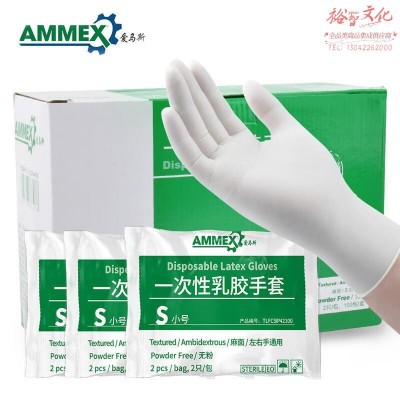 爱马斯(AMMEX)一次性乳胶橡胶手套 100双/盒大码 无菌灭菌独立包装 牙科实验乳白色SKU:yzwhyp960716