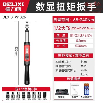 德力西高精度可调式扭力扳手公斤快速力矩火花塞汽修扳手扭矩扳手 【长柄】1/2寸【10.2-340Nm】SKU:yzwhyp960963