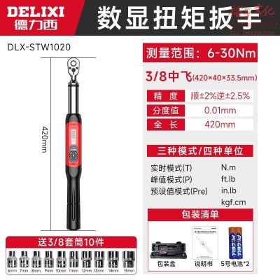 德力西高精度可调式扭力扳手公斤快速力矩火花塞汽修扳手扭矩扳手 【长柄】3/8寸【0.9-30Nm】SKU:yzwhyp960970