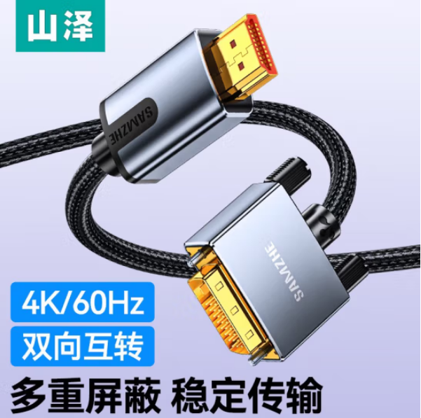 山泽LHD-8015 HDMI转DVI连接线 DVI转HDMI 4K60Hz高清线双向互转笔记本电脑投影仪显示器视频线 1.5米SKU:yzwhyp961884