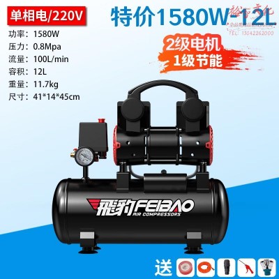 飛豹(FEIBAO)低音无油空压机小型220V工业级空气压缩机木工钉枪喷漆汽修打气泵 12L-1580W双管上气SKU:yzwhyp961937