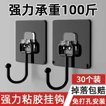 宜思家(YISIJIA)挂钩粘钩强力承重免打孔无痕粘胶厨房墙壁浴室 黑色 30个装SKU:yzwhyp963317