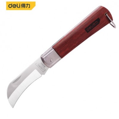 得力(deli) 原木手柄锰钢电工刀 折叠电缆刀电线切割工具电工刀 原木弯刃电工刀 DL0060