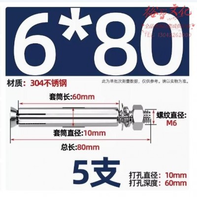 不锈钢胀管304M6*80 5只装SKU:yzwhyp963494