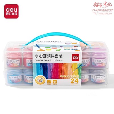 得力(deli)24色18ml水粉画颜料套装(盒) HS114-24 SKU:yzwhyp963652