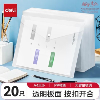 得力(deli)20只A4按扣学生桌面透明文件袋 试卷收纳文件套 学科分类 塑料防水档案袋 PP20SKU:yzwhyp964271
