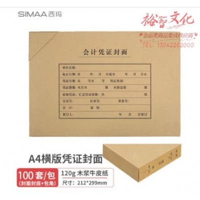 首页 > 办公用品 > 文具 > 西玛(SIMAA)A4凭证封面套包100套(封面 包角)木浆120g 299*212mm 配套a4记账凭证纸费用报销单据FM152B-50 SKU:yzwhyp969092