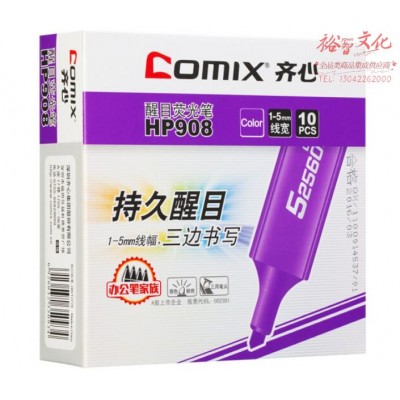 齐心(Comix) HP908 持久醒目记号笔 颜色笔 紫色 10支装SKU:yzwhyp975409