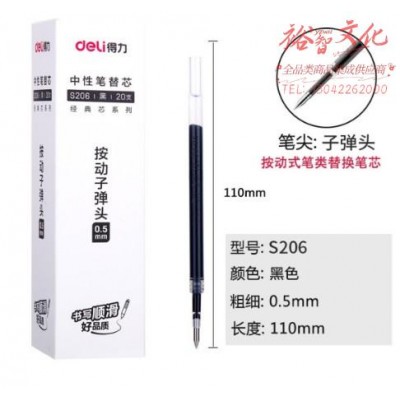 得力S206中性笔替芯0.5mm按动子弹头(黑)(20支/盒)SKU:yzwhyp975663