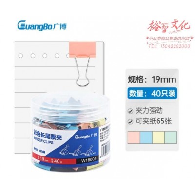 广博(GuangBo)40只19mm彩色长尾夹票夹5#金属燕尾夹票据夹子 办公用品W18004 SKU:yzwhyp977483